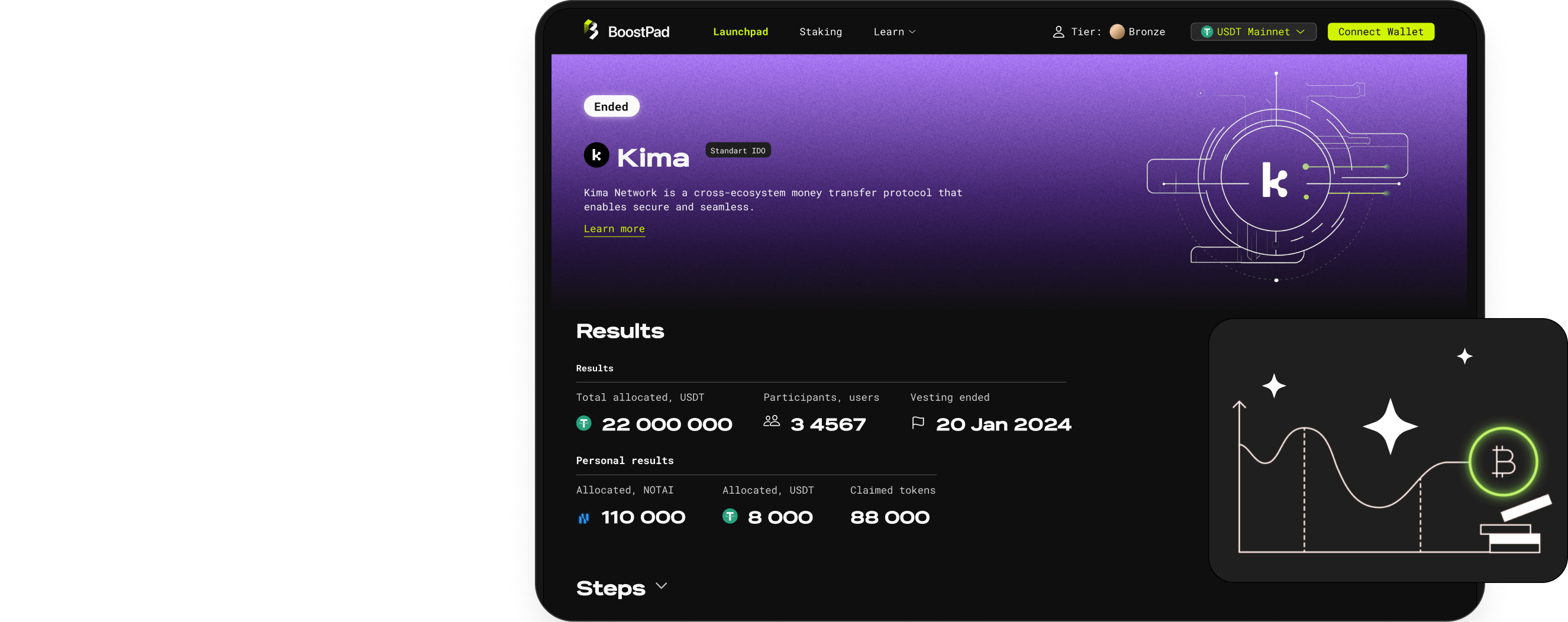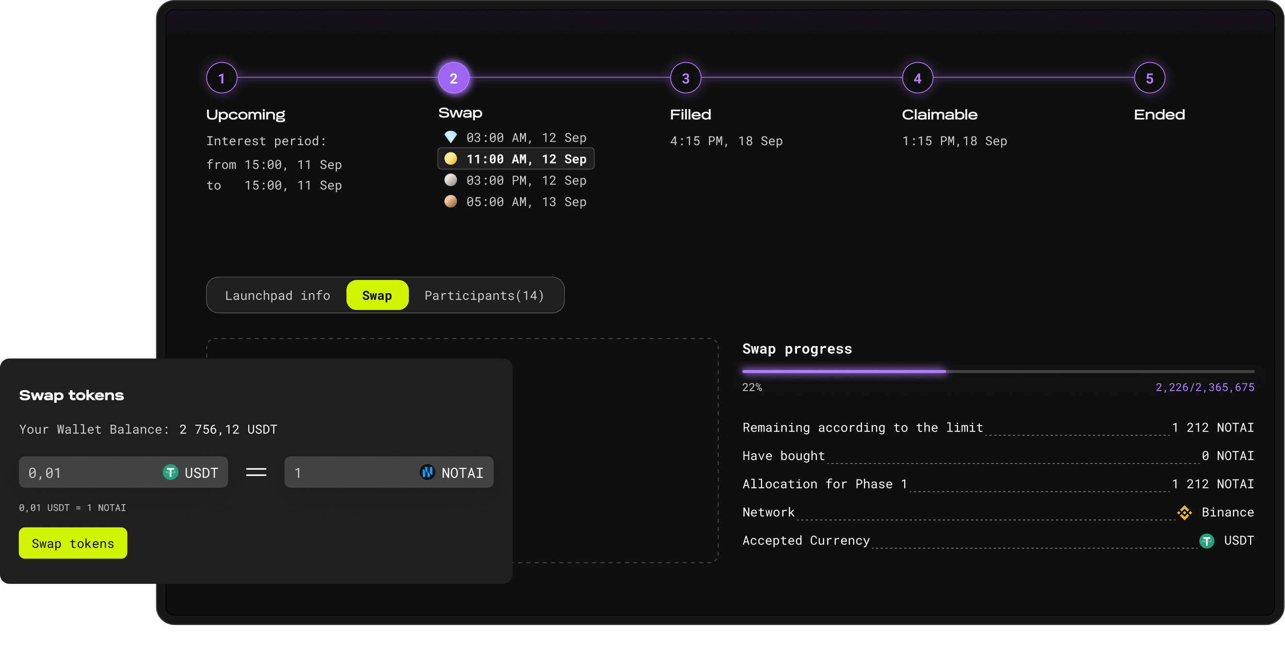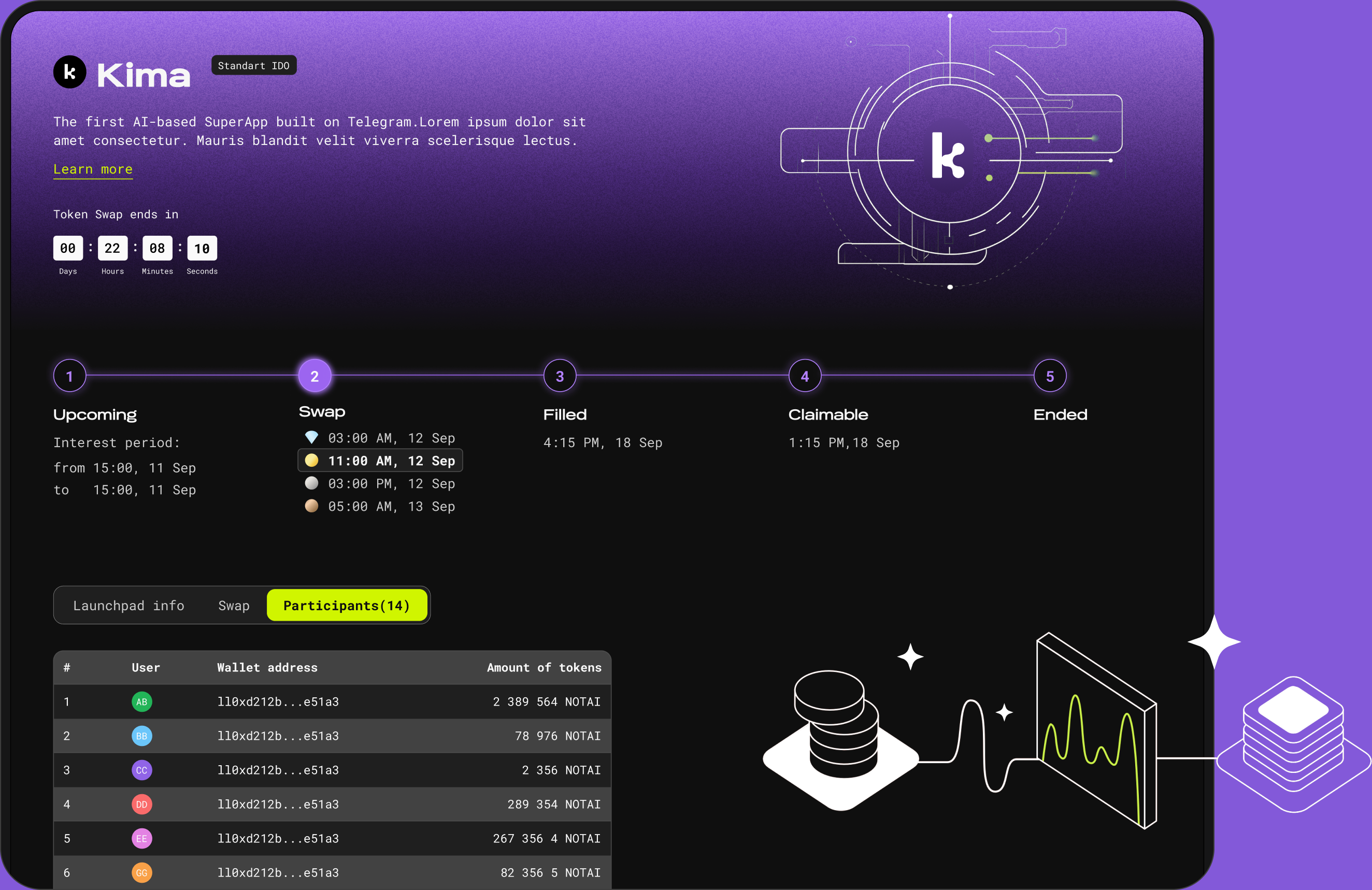 К функционалу предъявлялись свои требования. В первую очередь, необходимо было сделать процесс покупки и получения токенов простым и понятным для пользователя. И отразить все шаги, которые проходит пользователь, на таймлайне.
