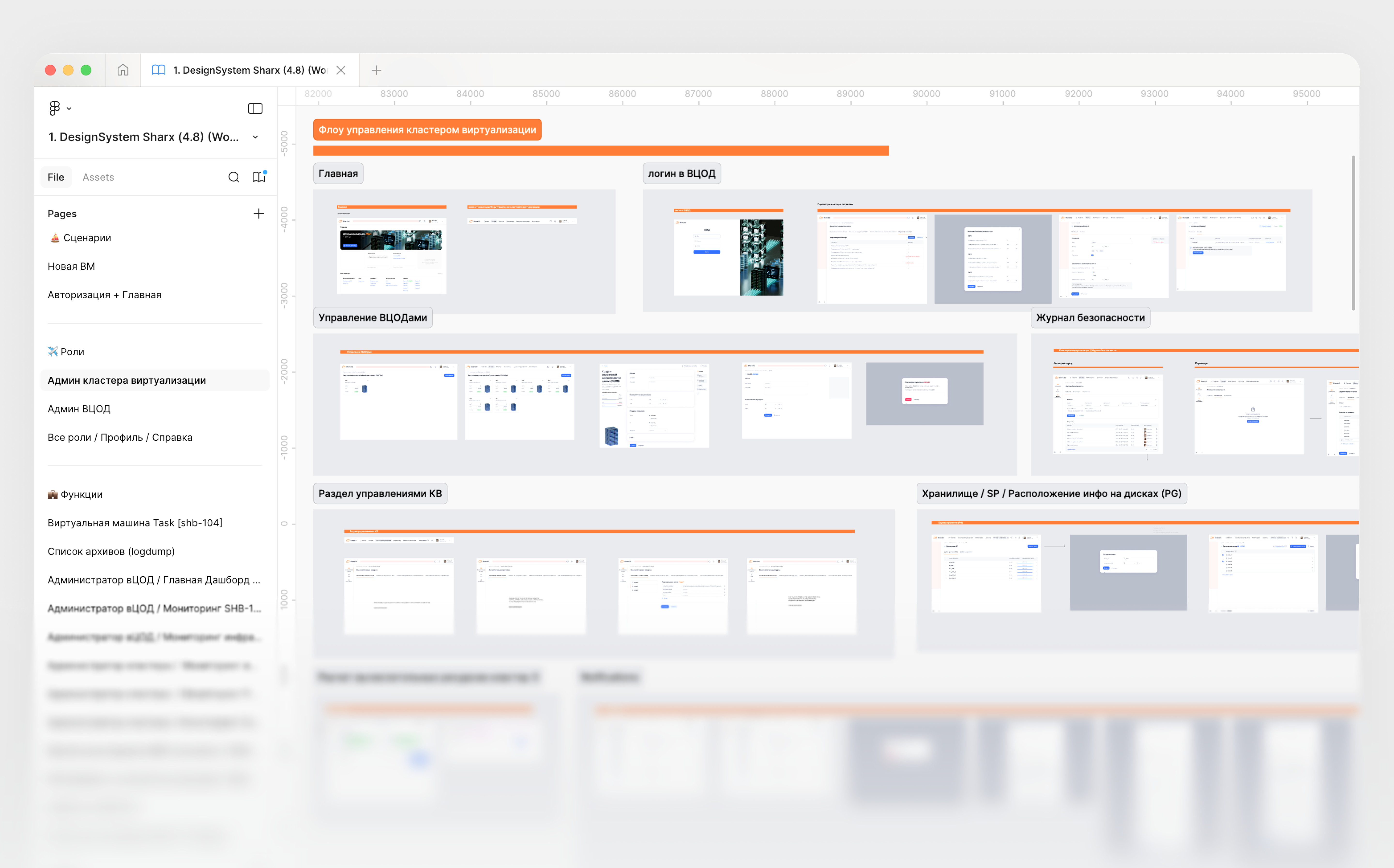 Перед стартом мы провели детальный анализ всех сценариев использования продукта. Платформа охватывает несколько ролей: администратор кластера, администратор ВЦОД, конечный пользователь. Для каждой роли мы проработали отдельный флоу — от авторизации до специфичных операций.
